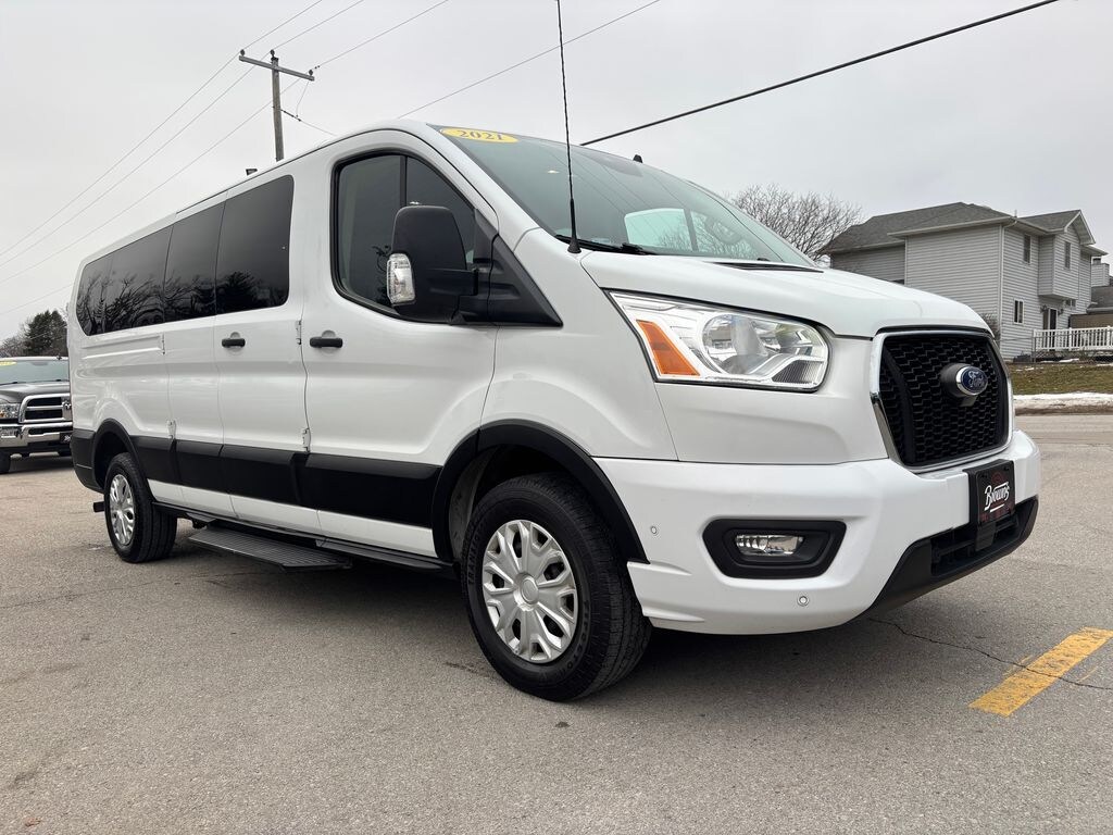 ONE OWNER. CLEAN HISTORY. This 2021 Ford Transit 350 LR Passenger XLT RWD is built to move people comfortably and efficiently, whether its for business, shuttle use, or group travel. Powered by a 3.5L V6 engine and paired with a smooth 10-speed automatic transmission, it delivers confident performance while maintaining a composed ride. The long wheelbase and passenger-focused XLT trim provide generous interior space, smart storage solutions, and everyday usability.
